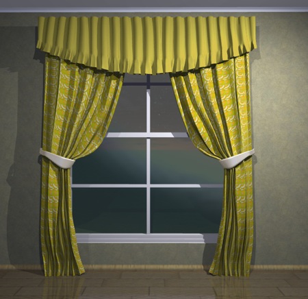 Let’s imagine that you are designing a room in yellow colors, and you have found a nice 3D model of curtains.