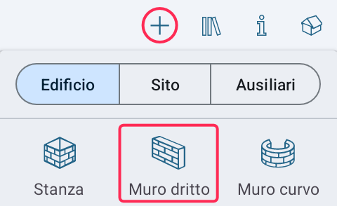1. Attiva lo strumento Muro dritto. Tocca una volta per disegnare un solo muro. Tocca due volte per disegnare più muri uno dopo l'altro.