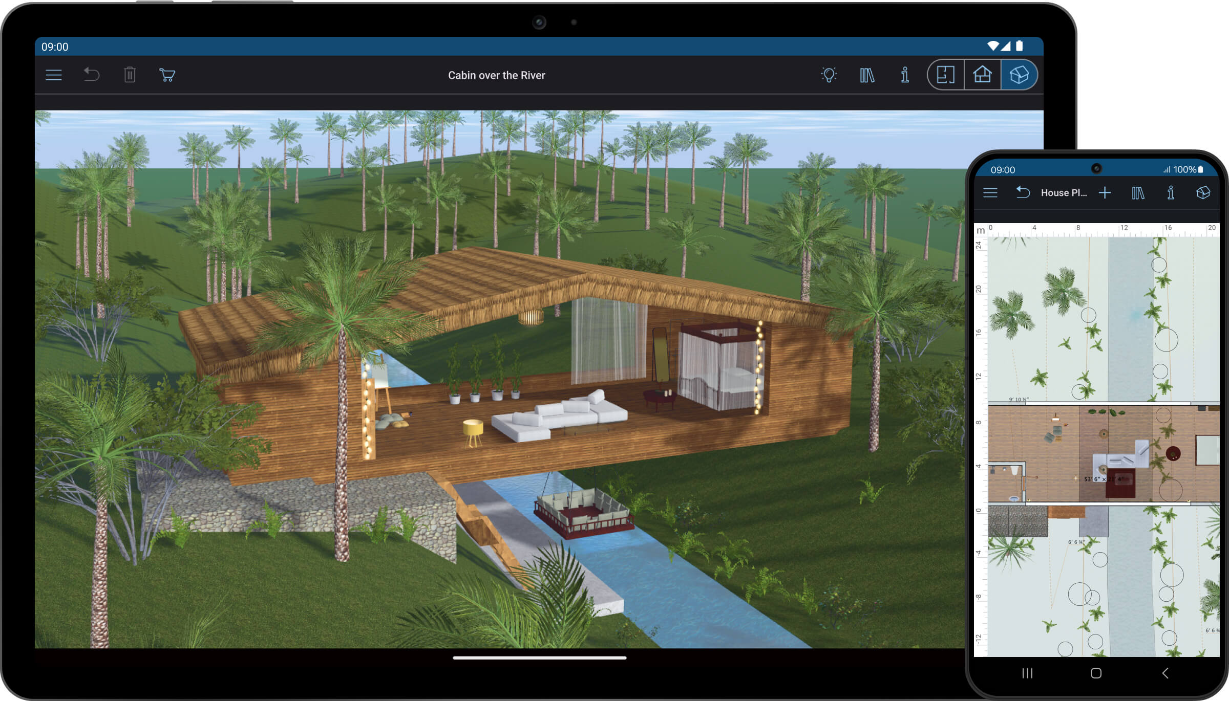 Access a rich library of furniture, appliances, decor and other objects available in the app, import your own objects or get additional themed packages for more functional and beautiful designs.