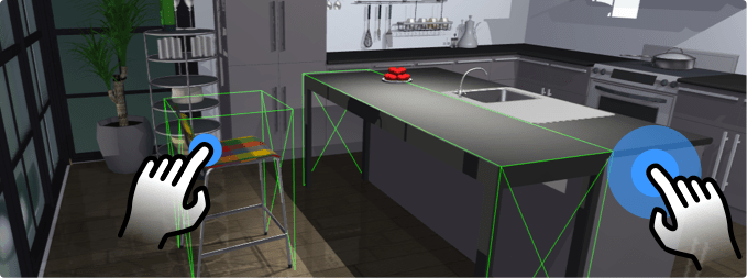 Tap on an object to select it. Place and hold a finger anywhere on the screen (this can also be the selected object). Then tap on other objects that you want to select.
