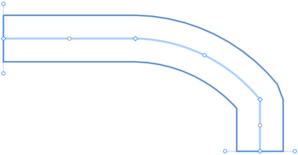 The part of a pathway between two points is called a segment. By default, all segments are straight, but you can make a segment rounded by dragging a circular handle in the middle of the segment.