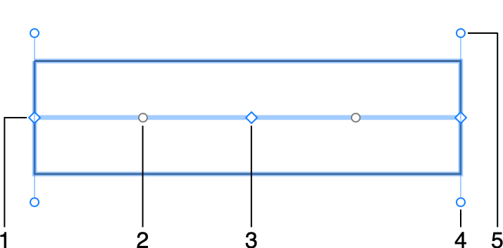 2 – Ein runder Anfasser, mit dem Sie ein gerades Segment in ein bogenförmiges Segment verwandeln können.