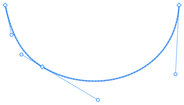 Mit den kreisförmigen Anfassern können Sie die Krümmung eines Liniensegments zwischen zwei Punkten ändern.
