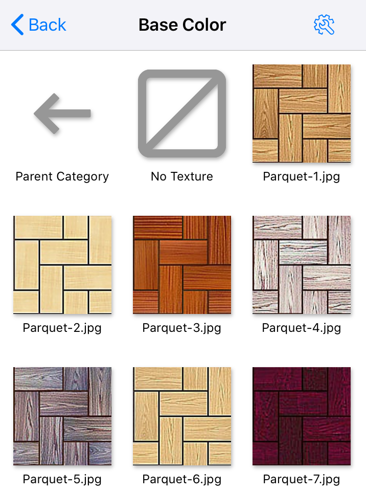 To choose a new texture or remove the present one, tap on the corresponding preview area. This will open the texture library.