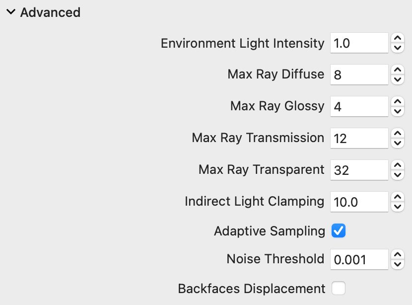 The Advanced section has extra settings for the rendering engine. To show or hide these settings, tap on the v-shaped icon.