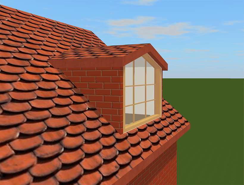 Ziehen Sie zum Hinzufügen eines Dachgaubenfensters ein Dachgaubenfenster aus der Kategorie Dachgauben in der Objektbibliothek und legen Sie es auf dem Dach ab. Sie sollten dann die Dachgaube umherschieben, um sie richtig zu installieren.