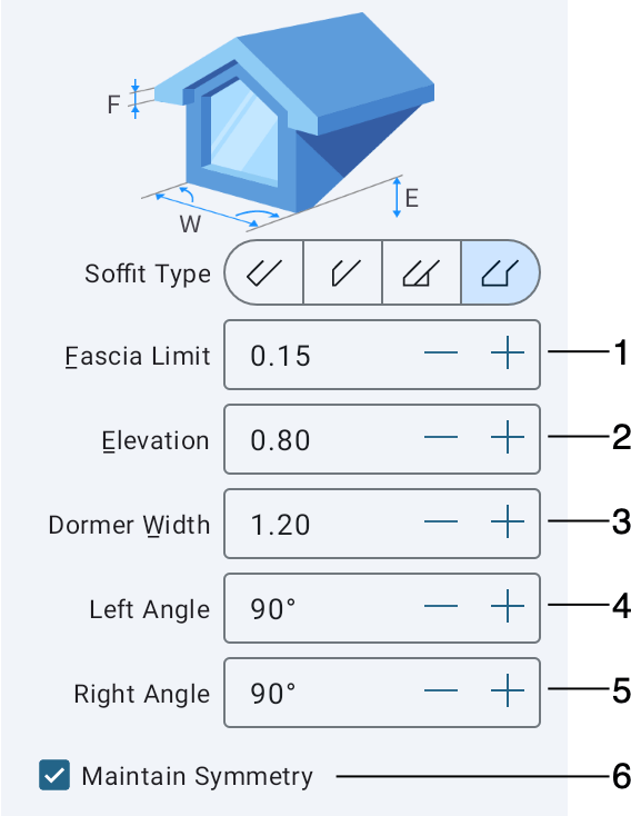 1 – The type of the soffit. You can choose either basic, simple, horizontal, or box end soffit.